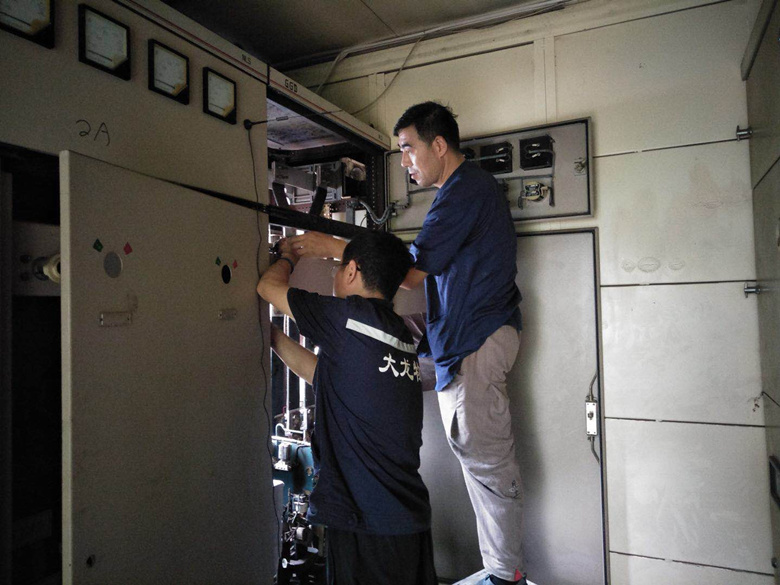 各项目部防汛小组成员迅速赶到各自负责的区域查看排水情况,对小区内的5000余个雨篦子进行疏通,并将安全隐患进行逐一排查。凌晨5点,因用电负荷大、电力设施老化,滨河小区内10栋楼538户居民出现断电情况。面对险情,大龙物业公司领导和专业维修人员第一时间赶赴事故现场,经排查确定停电原因系配电室箱变传感器发生故障。